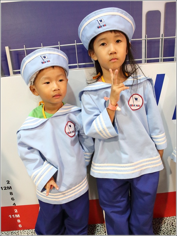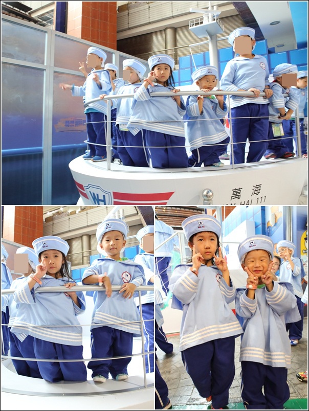 寶貝們進入船艙換裝後先模擬駕駛船隻,